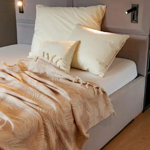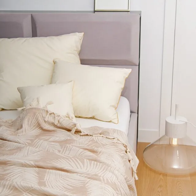 Utrzymanie: Można prać w pralce w domowych warunkach – nawet w 60 st. C, co skutecznie eliminuje roztocza oraz inne drobnoustroje. Poduszka bardzo szybko schnie.