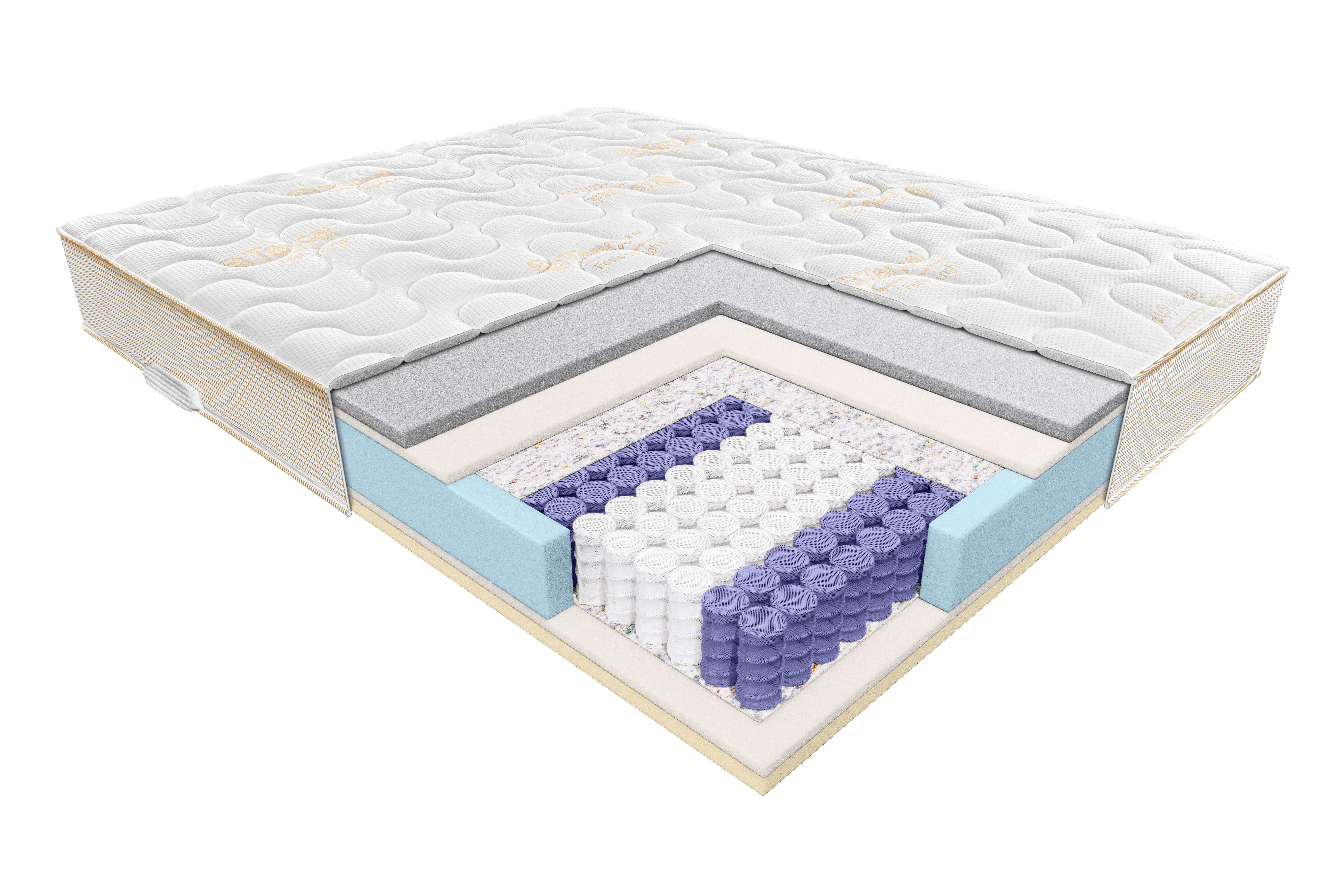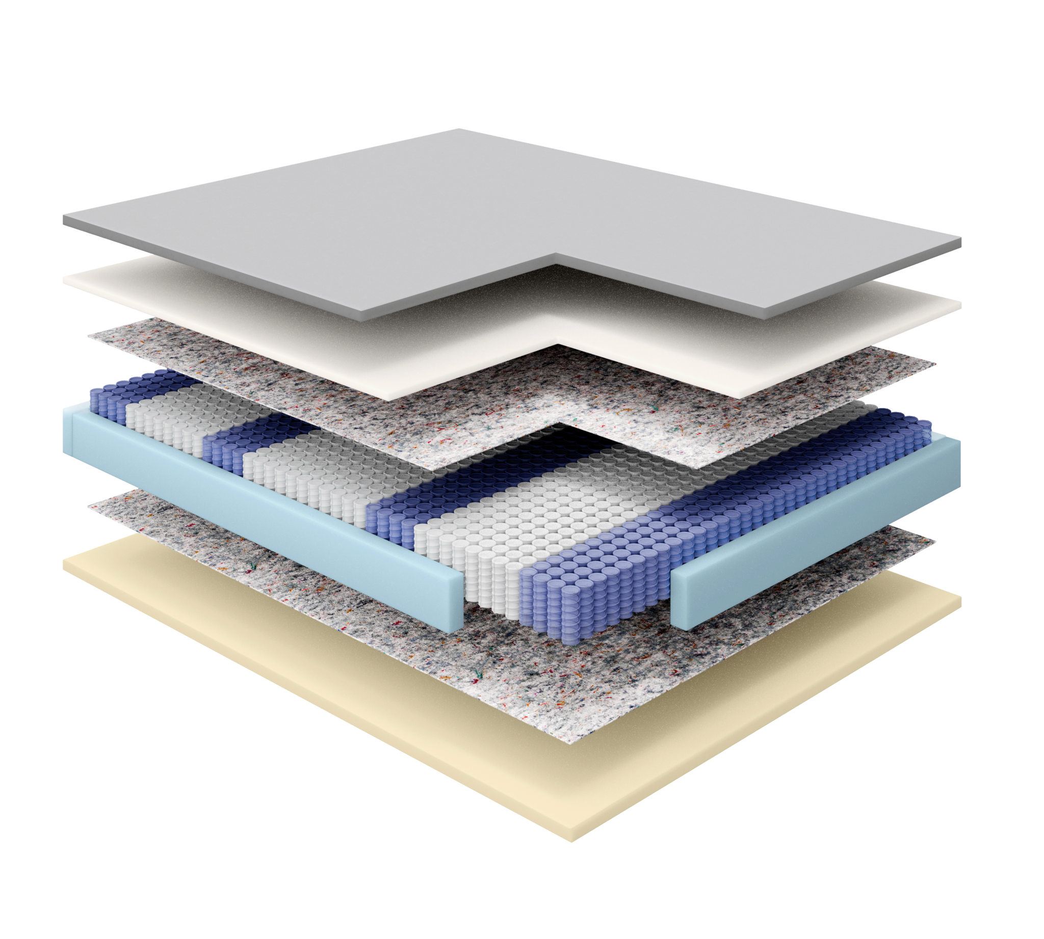Uzupełnieniem trwałej podstawy są innowacyjne i elastyczne pianki umieszczone na mocnej piance bazowej. Z jednej strony wkładu znajduje się pianka wysokoelastyczna, która wspomaga elastyczność punktową sprężyny kieszeniowej. Jest surowcem bardzo wytrzymałym i niezwykle sprężystym. Dobrze dopasowuje się do kształtów ciała, jest odporna na ściskanie i niezwykle trwała, a po odciążeniu szybko wraca do swoich pierwotnych kształtów. Drugą stronę wypełnia delikatnie otulająca ciało pianka termoelastyczna, dokładnie dopasowująca się do jego konturów pod wpływem temperatury. Jej struktura sprawia, że ciało nie jest poddawane żadnym uciskom, w efekcie nic nie blokuje krążenia krwi. Pianka termoelastyczna jest też odporna na bakterie, pleśń, roztocza i inne chorobotwórcze mikroorganizmy, a więc jest doskonałą opcją dla alergików. W zależności od potrzeb, możesz zmieniać podparcie, wybierając te bardziej sprężyste bądź otulające.