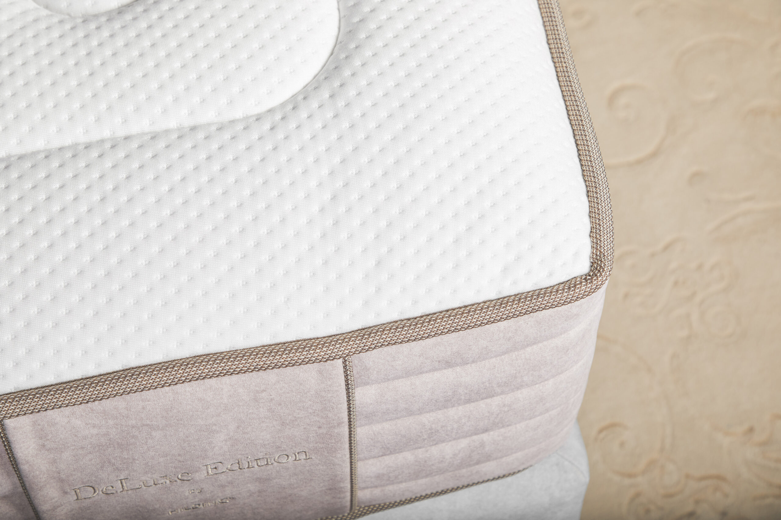 Pokrowiec Baroque czyli historyczna inspiracja, którą możesz przemycić do swojej sypialni. Powierzchnia materaca jest misternie pikowana, nadając elegancji i uroku. Jedwabisty i niezwykle miły w dotyku pokrowiec Cashmere z dodatkiem wysokiej jakości wiskozy i wartościowego kaszmiru to także bariera przeciw alergenom, doskonale izolująca przed zimnem i zdolna wchłonąć aż 40% wilgoci z otoczenia, zapewniając idealne warunki do snu. Boki pokrowca, wykonane z miękkiej, welurowej tkaniny, którą zdobią subtelne, poziome przeszycia, tworzą efektowną strukturę materaca. Jasnobeżowy kolor delikatnie podkreślony ozdobnymi lamówkami, nadaje elegancji i wyrafinowanego stylu. Baroque wprowadza historię i luksus do Twojego codziennego snu. Spód materaca został