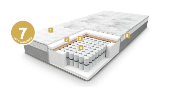 Bardzo wysoka elastyczność punktowa, każda sprężynka reaguje osobno, partner nie odczuwa naszych ruchów w trakcie snu. 7 stref zapewnia optymalne wsparcie kręgosłupa i całego ciała.