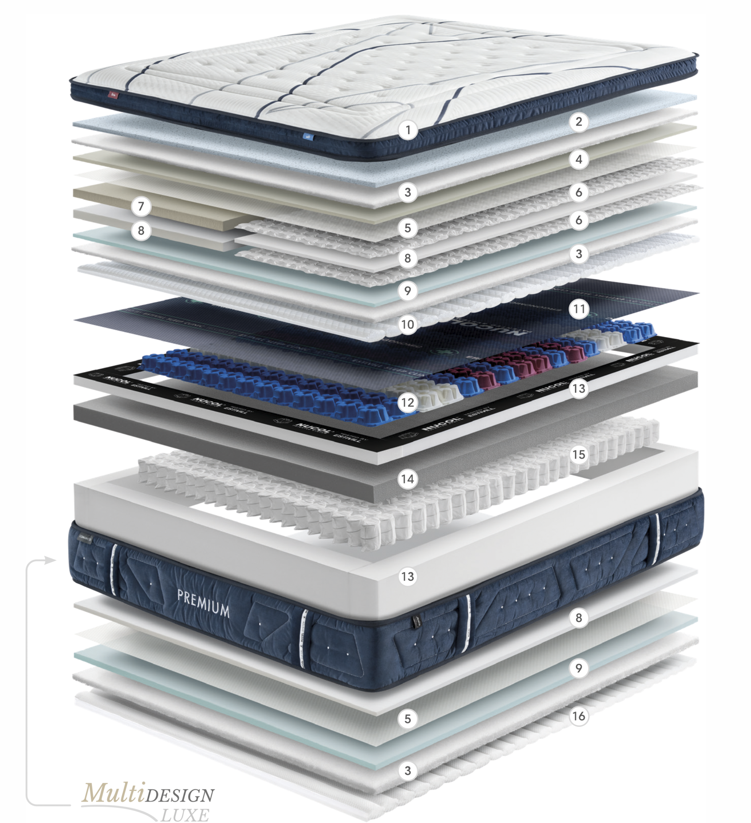 Krótko mówiąc, system Nucol jest innowacyjnym rozwiązaniem idealnym dla najbardziej wymagających. Ta technologia łączy w sobie miękkość, wytrzymałość, zdolność adaptacji i świeżość dzięki oddychającym warstwom. Zapewnia idealny komfort i relaks podczas snu.