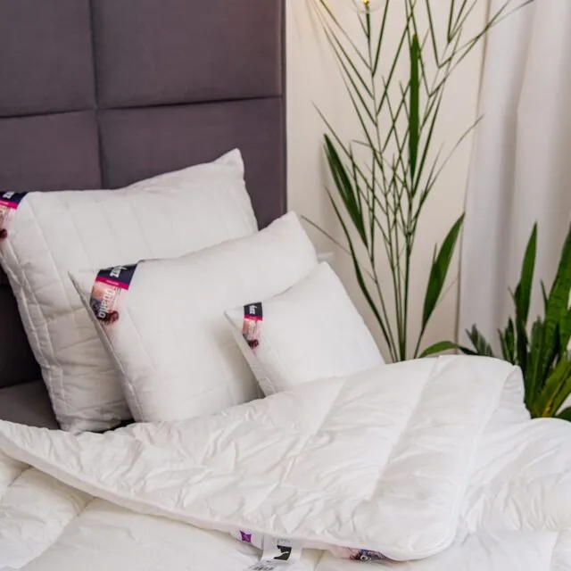 Budowa: Poduszka uszyta z trójwarstwowej pikówki. Na jej wyjątkową puszystość, wyporność oraz łatwość w użytkowaniu składają się aż trzy warstwy: tkanina pokryciowa, włóknina, wigofil. Wersja TERMO posiada dodatkowy wkład z wigofilu wewnątrz poduszki, co umożliwia pranie samej poszewki bez wypełnienia. Posiada zamek błyskawiczny umożliwiający regulację wysokości oraz twardości.